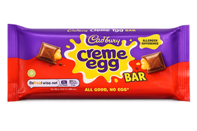 Cadbury Dairy Milk Creme Egg Chocolate Bar är en mjölkchokladkaka med mjuk fondantfyllning som kombinerar den klassiska smaken av Cadbury Dairy Milk med den ikoniska Creme Egg-kärnan. Cadbury Creme Egg chokladkaka är ett populärt val för dig som vill njuta av påskens signatursmak i ett generöst chokladformat.