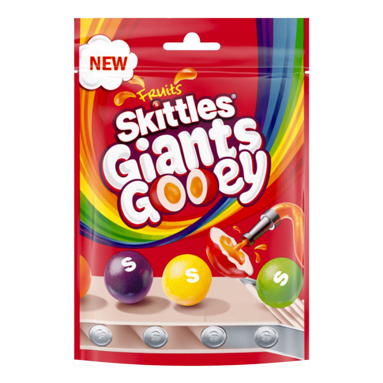 Ingredienser: Socker, glukossirap, invertsockersirap, palmfett, syror (E296, E330), dextrin, aromer, maltodextrin, modifierad stärkelse, färg (E162, E163, E170, E100, E160a, E132, E133), surhetsreglerande medel (E331, natriumtrifosfat), geleringsmedel (pektin), glaseringsmedel (E903), emulgeringsmedel (solroslecitin).
