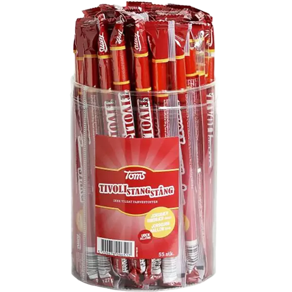 Ingredienser: Sukker/socker, glukose-fruktosesirup/-sirap, hvedemel/hvetemel/vetemjöl, modificeret majs- og kartoffel-/potetstivelse/modifierad majs- och potatisstärkelse, helt hærdet/herdnet/härdat vegetabilsk fedt/fett (palmekerne/-kjerne/palmkärna, kokos), fugtighedsbevarende middel/medel (glycerol/glyserol), emulgator/emulgeringsmedel (mono- og diglycerider af fedtsyrer), fortykningsmiddel/förtjockningmedel (arabisk gummi), syre/surhetsreglerande medel (æble-/eplesyre/äppelsyra), salt, farvestoffer/fargestoffer/färgämnen (carmin/karmin, curcumin/kurkumin), aromaer/aromämnen, antioxydant (ascorbinsyre/-syra)