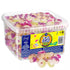 Ingredienser: glukossirap, socker, majsstärkelse/-stivelse, surhetsreglerande medel (E270, E330, E325), färgande livsmedel/fødevarer der farver/næringsmidler som avgir farge (koncentrat av morot/gulrot/gulerod, saflor, äpple/æble, spirulina, svartvinbär/solbær, pumpa/græskar och körsbär/kirsebær, bränt socker/brændt sukker), fullhärdat vegetabiliskt fett (ryps, solros/solsikke), naturliga aromer. kan innehålla vete.