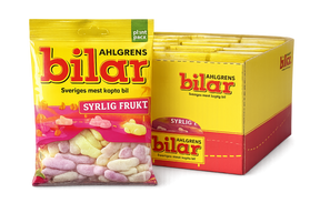 Ahlgrens Bilar Syrlig Frukt är ett populärt svenskt skumgodis med fruktiga och syrliga smaker. De klassiska bilformade godisbitarna har en mjuk konsistens och en frisk smak av hallon, persika och ananas. Perfekt för dig som gillar syrligt godis och vill njuta av en modern variant av Sveriges mest köpta bil.