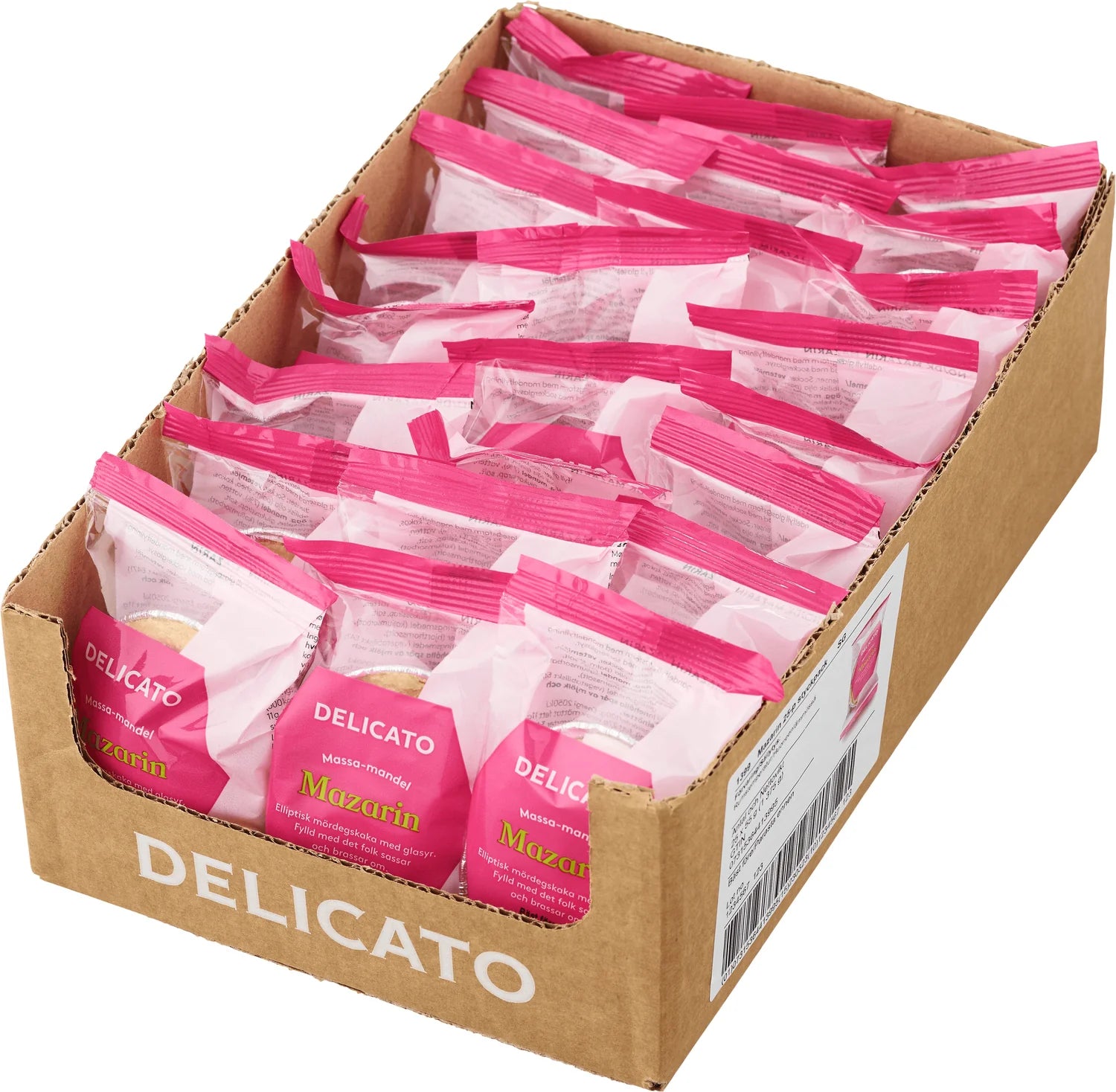 Ingredienser: Socker, VETEMJÖL, vegetabilisk olja (palm, shea, kokos, raps), ÄGG, MANDEL (7%), vatten, majsstärkelse, glukossirap, salt, konserveringsmedel (kaliumsorbat), bakpulver (hjorthornssalt), emulgeringsmedel (vegetabiliskt E471).